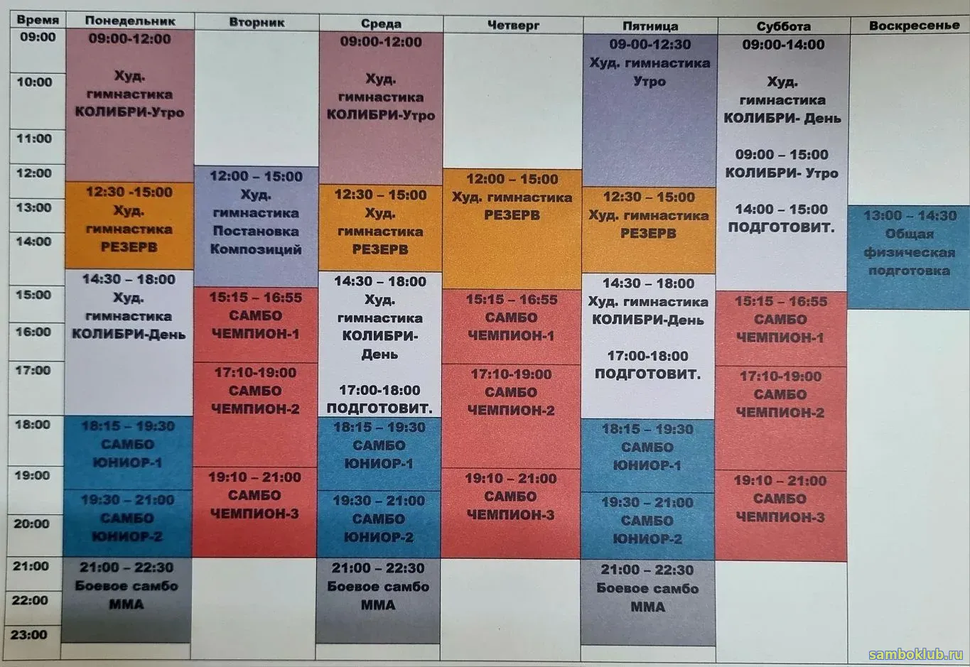 Расписание клуба